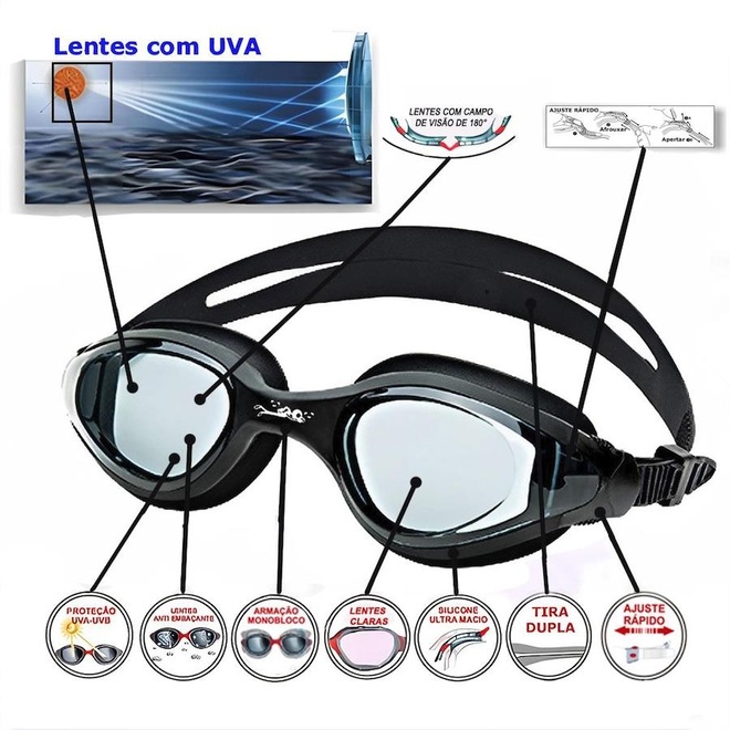 Óculos de Natação Gold Sports Winner 9.0 High Definition são projetados para atender às necessidades dos nadadores profissionais, com uma tecnologia anti-neblina inovadora que garante uma visão clara, mesmo nas condições mais desafiadoras. Equipado com lentes de grande angular, anti-fog e de alta definição: Mergulhe em águas cristalinas com a ajuda de nossa grande angular, anti-fog, e lentes de alta definição que proporcionam uma experiência subaquática nítida e imersiva. Ajuste confortável: Os óculos são criados com um material de silicone macio e durável que se encaixa confortavelmente ao redor dos olhos sem causar irritação ou desconforto, permitindo que você nade por horas. Armação e tira em silicone de ultima geração ultra confortável e capaz de se adaptar a qualquer formato de rosto. Pode ser facilmente ajustado.Nossos óculos de natação apresentam um design elegante e moderno que é certo para virar a cabeça na piscina. Com uma escolha de cores elegantes e um ajuste de perfil baixo, você vai olhar e se sentir bem como você deslizar através da água. Uso versátil. Nossos óculos de natação são perfeitos para uma variedade de atividades aquáticas, incluindo natação, mergulho, Triatlo e muito mais. Se você é um iniciante ou um profissional experiente, nossos óculos são projetados para atender às suas necessidades e ajudá-lo a executar o seu melhor. Suas lentes são transparente muito confortavel para picinas fechadass, suas lentes são confeccionadas em policarbonato de ultima geração proporcionando uma visão HD, lentes com duas camadas anti-fog, proteção UVA e UVB400, armação em em silicone liquido ultra soft, tiras duplas em silicone ultra soft com ajuste rápido.