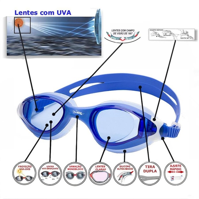 Óculos de Natação Gold Sports Winner 9.0 High Definition são projetados para atender às necessidades dos nadadores profissionais, com uma tecnologia anti-neblina inovadora que garante uma visão clara, mesmo nas condições mais desafiadoras. Equipado com lentes de grande angular, anti-fog e de alta definição: Mergulhe em águas cristalinas com a ajuda de nossa grande angular, anti-fog, e lentes de alta definição que proporcionam uma experiência subaquática nítida e imersiva. Ajuste confortável: Os óculos são criados com um material de silicone macio e durável que se encaixa confortavelmente ao redor dos olhos sem causar irritação ou desconforto, permitindo que você nade por horas. Armação e tira em silicone de ultima geração ultra confortável e capaz de se adaptar a qualquer formato de rosto. Pode ser facilmente ajustado.Nossos óculos de natação apresentam um design elegante e moderno que é certo para virar a cabeça na piscina. Com uma escolha de cores elegantes e um ajuste de perfil baixo, você vai olhar e se sentir bem como você deslizar através da água. Uso versátil. Nossos óculos de natação são perfeitos para uma variedade de atividades aquáticas, incluindo natação, mergulho, Triatlo e muito mais. Se você é um iniciante ou um profissional experiente, nossos óculos são projetados para atender às suas necessidades e ajudá-lo a executar o seu melhor. Suas lentes são transparente muito confortavel para picinas fechadass, suas lentes são confeccionadas em policarbonato de ultima geração proporcionando uma visão HD, lentes com duas camadas anti-fog, proteção UVA e UVB400, armação em em silicone liquido ultra soft, tiras duplas em silicone ultra soft com ajuste rápido.