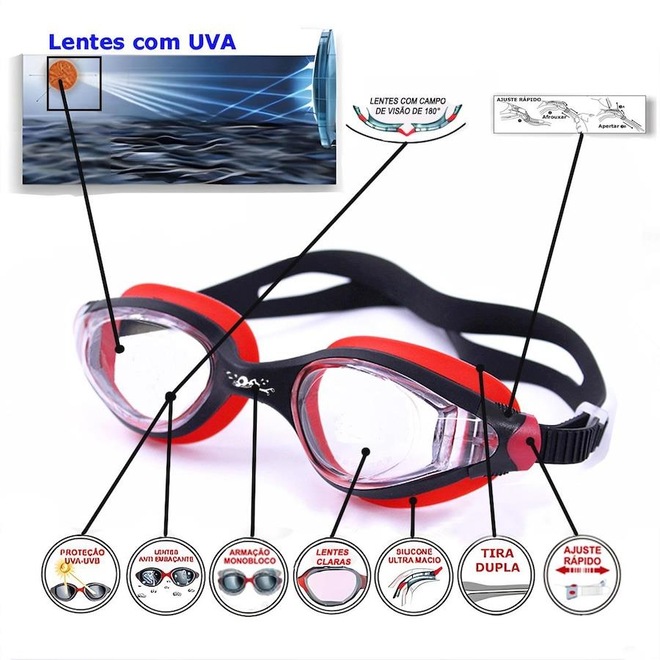 Óculos de Natação Gold Sports Winner 9.0 High Definition são projetados para atender às necessidades dos nadadores profissionais, com uma tecnologia anti-neblina inovadora que garante uma visão clara, mesmo nas condições mais desafiadoras. Equipado com lentes de grande angular, anti-fog e de alta definição: Mergulhe em águas cristalinas com a ajuda de nossa grande angular, anti-fog, e lentes de alta definição que proporcionam uma experiência subaquática nítida e imersiva. Ajuste confortável: Os óculos são criados com um material de silicone macio e durável que se encaixa confortavelmente ao redor dos olhos sem causar irritação ou desconforto, permitindo que você nade por horas. Armação e tira em silicone de ultima geração ultra confortável e capaz de se adaptar a qualquer formato de rosto. Pode ser facilmente ajustado.Nossos óculos de natação apresentam um design elegante e moderno que é certo para virar a cabeça na piscina. Com uma escolha de cores elegantes e um ajuste de perfil baixo, você vai olhar e se sentir bem como você deslizar através da água. Uso versátil. Nossos óculos de natação são perfeitos para uma variedade de atividades aquáticas, incluindo natação, mergulho, Triatlo e muito mais. Se você é um iniciante ou um profissional experiente, nossos óculos são projetados para atender às suas necessidades e ajudá-lo a executar o seu melhor. Suas lentes são transparente muito confortavel para picinas fechadass, suas lentes são confeccionadas em policarbonato de ultima geração proporcionando uma visão HD, lentes com duas camadas anti-fog, proteção UVA e UVB400, armação em em silicone liquido ultra soft, tiras duplas em silicone ultra soft com ajuste rápido.