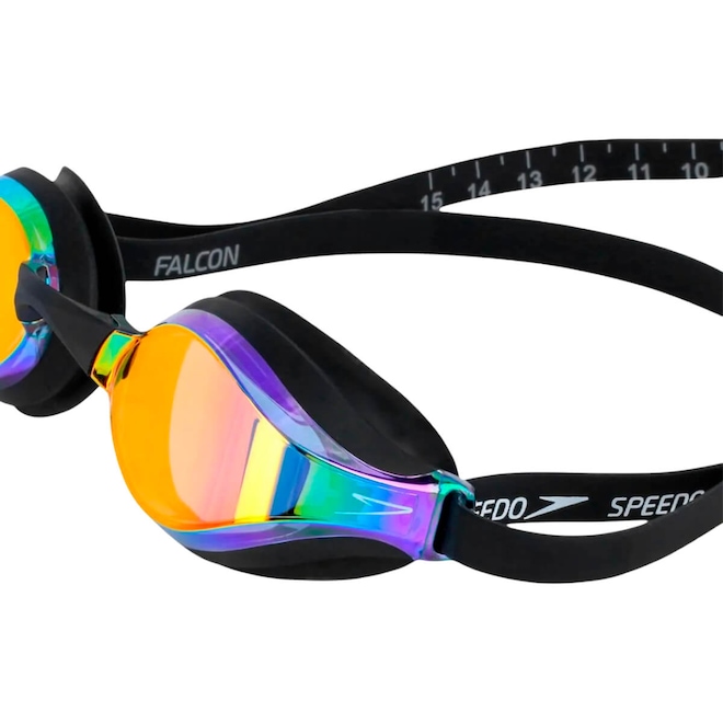 Obtenha o máximo desempenho com os Óculos FALCON Speedo! Desenvolvido em tecnologia Comfort Feel, que traz um conforto excepcional durante o uso, você nunca nadou com óculos iguais ao Falcon. Com lentes espelhadas REVO, feita com várias camadas coloridas, que oferecem redução do brilho e reflexo da água e mais proteção e estilo. Modelo com área de vedação P, em baixo perfil para menor arrasto e excelente desempenho. Perfeito para quem busca a sua high performance e gosta de ajustes nos mínimos detalhes; acompanham 4 tamanhos de narizeiras para melhor adaptação aos diferentes formatos de rosto, e suas tiras duplas possuem métrica para facilitar o ajuste e deixá-lo preciso. Speed it up com o Seu Falcon!