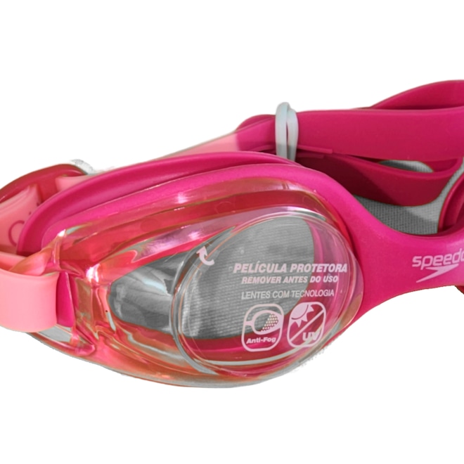 O Óculos de Natação Junior Olympic da Speedo é a escolha ideal para jovens nadadores que buscam conforto e desempenho nos treinos. Desenvolvido com a tecnologia SoftFrame, integra ventosa, moldura e narizeira, proporcionando um ajuste seguro e vedação eficiente contra a entrada de água. Suas lentes em policarbonato possuem tratamento Anti-Fog, que evita o embaçamento, e proteção UV, garantindo segurança e melhor visibilidade dentro da piscina. A área de vedação P é ideal para rostos pequenos, oferecendo encaixe confortável e firme. Com tira de silicone repartida e facilidade de ajuste, é um modelo perfeito para atletas iniciantes que desejam melhorar sua performance com qualidade e proteção.
