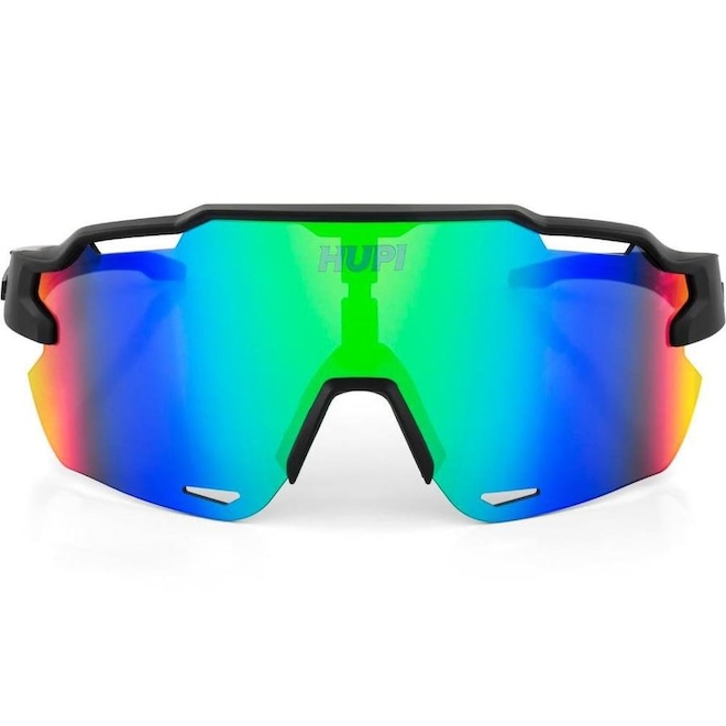 Óculos de Sol Esportivo Ciclismo HUPI Quiriri Preto Lente Verde Espelhado Proteção UV - Unissex