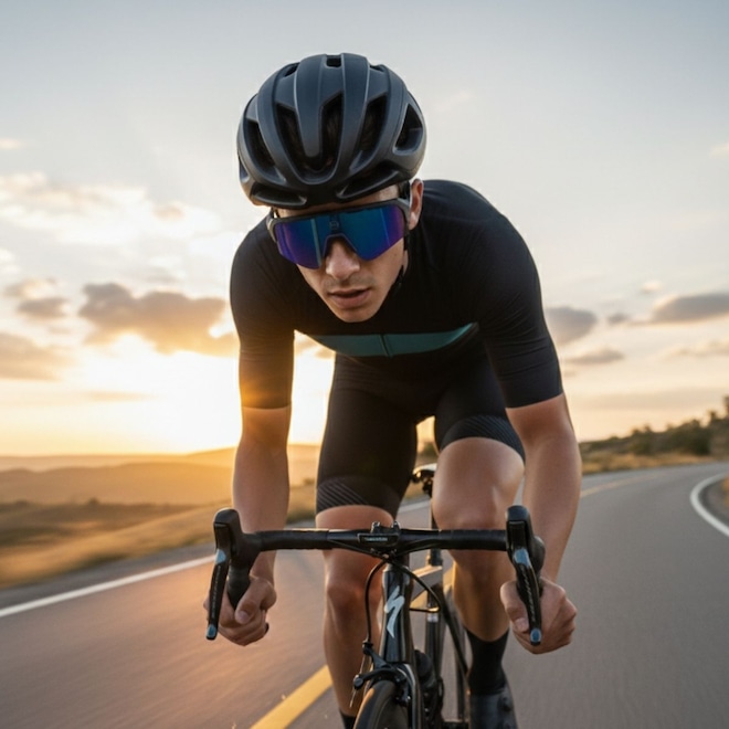 - Hastes em Polytech com zona metálica de ajuste e ponteias em borracha ultra aderente, trazendo maior conforto e segurança para manter o óculos no lugar certo, e adaptação para todos os tipos de capacetes de ciclismo.