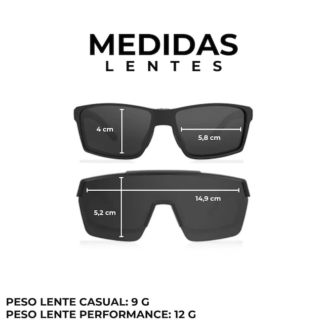 - 2 Clips (casual e performance), lentes com tecnologia Photon, visão nítida, precisa com proteção total contra raios ultra violeta e luz azul danosa.