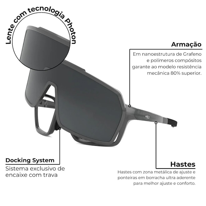 Óculos de Sol Esportivo Hb Presto Graphene/Black Gray 3 em 1