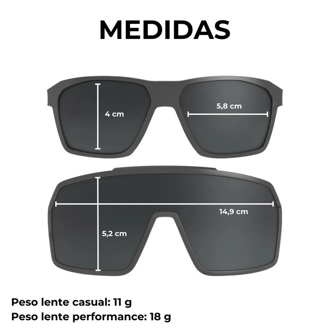 - 2 Clips (casual e performance), lentes com tecnologia Photon, visão nítida, precisa com proteção total contra raios ultra violeta e luz azul danosa.