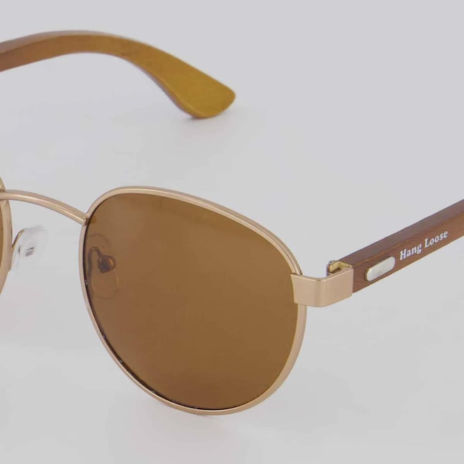 Contém: 1 óculos de sol e 1 estojo de tecidoComposição armação: PolicarbonatoComprimento da haste: 15 cmPeso aproximado: 20 gLargura frontal: 14 cmIndicado para: CasualCor da lente: MarromGênero: UnissexOrigem: NacionalTamanho único