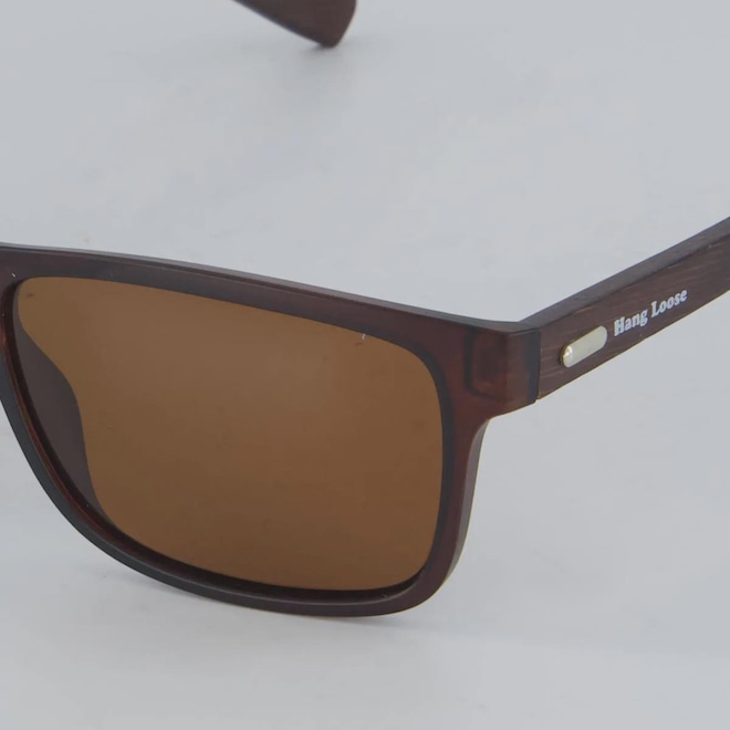 Contém: 1 óculos de sol e 1 estojo de tecido Composição da lente: 100% Policarbonato Comprimento da haste: 15 cm Peso aproximado: 20 g Largura frontal: 15 cm Indicado para: Casual Cor da haste: Marrom Origem: Nacional Gênero: Unissex Tamanho único