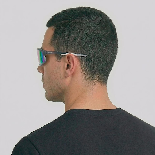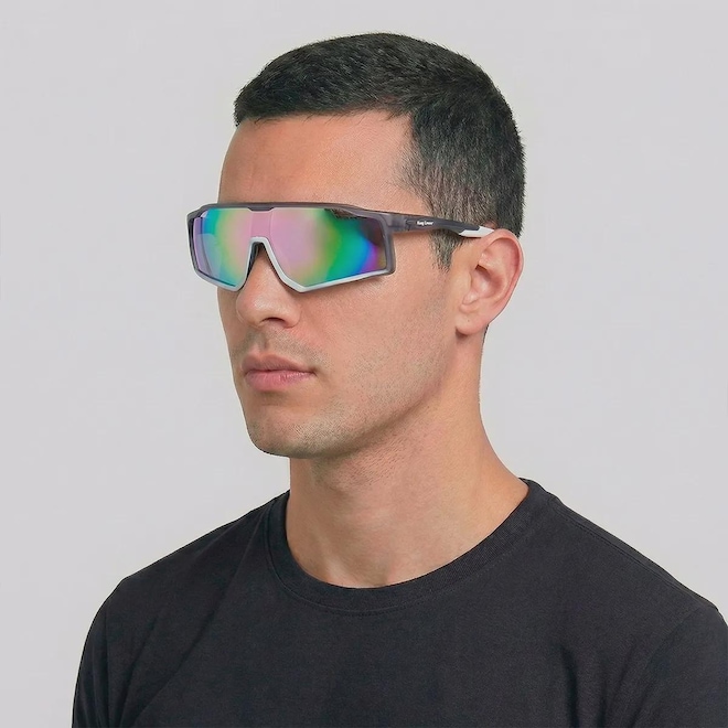 Contém: 1 óculos de sol e 1 estojo de tecidoComposição lente: PolicarbonatoComposição armação: PlásticoComprimento da haste: 13 cmPeso aproximado: 30 gLargura frontal: 20 cmIndicado para: CorridaCor da armação: CinzaGênero: UnissexOrigem: NacionalTamanho único