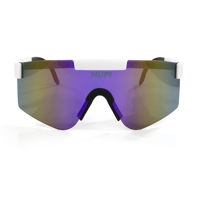- Sobre o produto - Óculos de Bike HUPI Maverick - UnissexÓculos de Sol HUPI Maverick Branco/Preto - Lente Roxo Espelhado