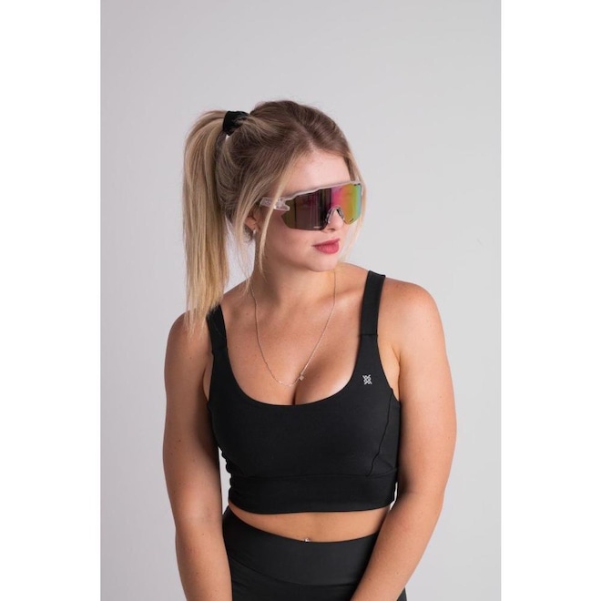 Os óculos são fabricados com lentes de policarbonato, tornando-os extremamente resistentes e leves. Você não precisará se preocupar com desconforto causado pelo peso, mesmo nos exercícios mais intensos.