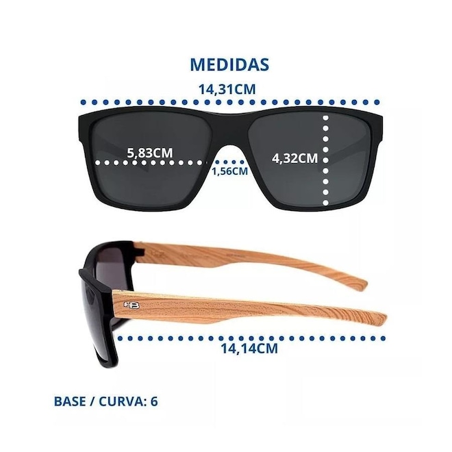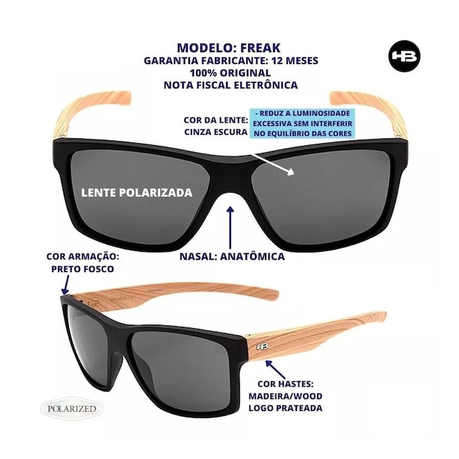 Óculos de Sol Masculino HB Freak Matte Black Wood Polarizado
