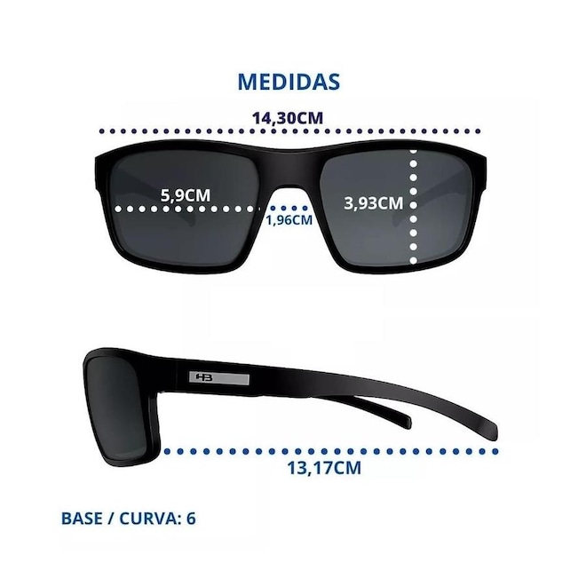 - Largura da lente: 5,9 cm- Altura da lente: 3,93 cm
