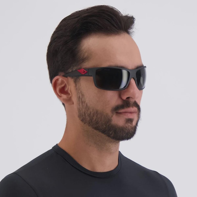 Contém: 1 óculos de sol, 1 estojo rígido e 1 flanela para limpeza Composição armação: Poliamida Material da lente: Policarbonato Cor predominante: Preto Comprimento da haste: 13 cm Peso aproximado: 30 g Largura frontal: 18 cm Indicado para: Casual Cor da lente: Preto Origem: Nacional Tamanho único
