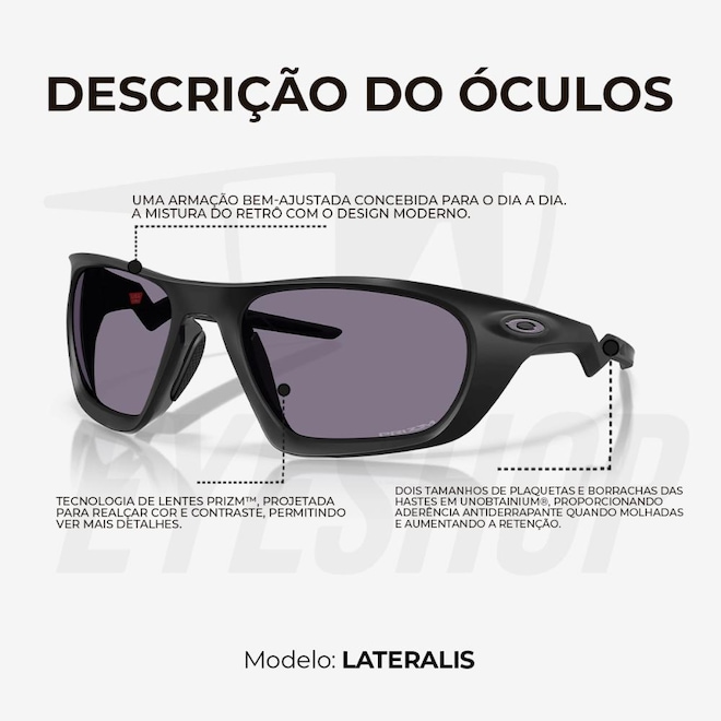 Somos revendedores autorizados Oakley, trazendo para você os melhores modelos com garantia de autenticidade e procedência. Compra segura, envio imediato e entrega super rápida!Óculos Oakley Lateralis - Estilo Moderno e Máximo Conforto.
