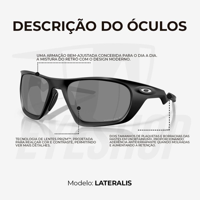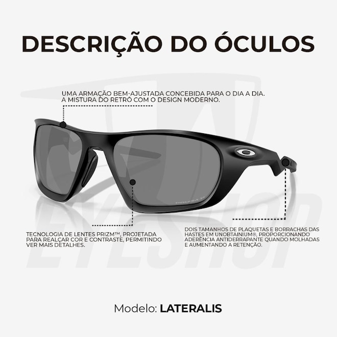 Somos revendedores autorizados Oakley, trazendo para você os melhores modelos com garantia de autenticidade e procedência. Compra segura, envio imediato e entrega super rápida!Óculos Oakley Lateralis - Estilo Moderno e Máximo Conforto.