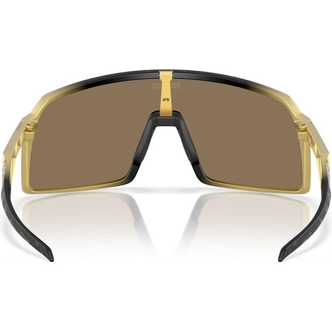 Projetado com o desempenho sempre em mente, o Sutro logo se tornou um favorito dos fãs com sua versatilidade e visual ousado. Com uma rica pintura dourada polida em toda a peça, combinada a um degradê sombreado em preto no centro da armação e nas pontas das hastes, essa combinação de cores parece ter sido criada pelo próprio Midas. Os detalhes, como a tampografia inspirada em tatuagens nas duas hastes, os logotipos de Elipse dourados e gravação do logotipo do Fortnite na lente não deixam dúvidas quanto a quem inspirou essa criação. Adornados com lentes Prizm 24K, que realçam cor e contraste permitindo ver mais detalhes, esses óculos se destacam.