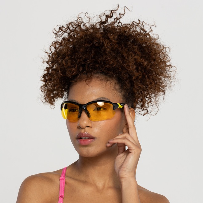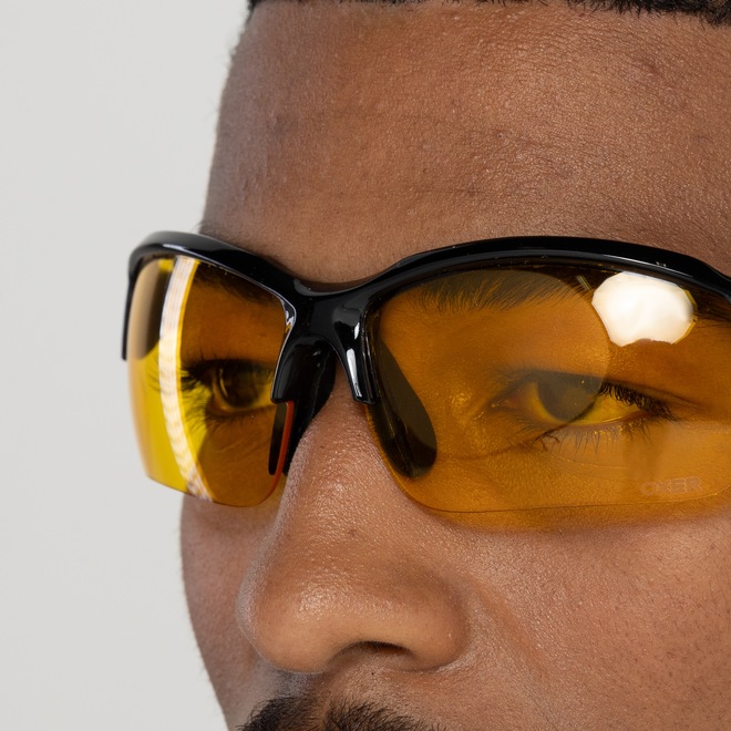 Possui matéria prima de policarbonato, a haste tem detalhes emborrachados e a narigueira é anatômica.