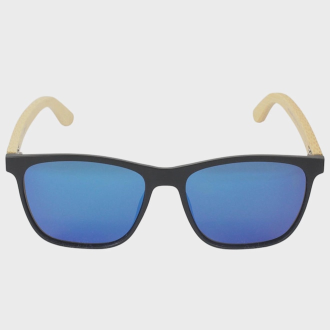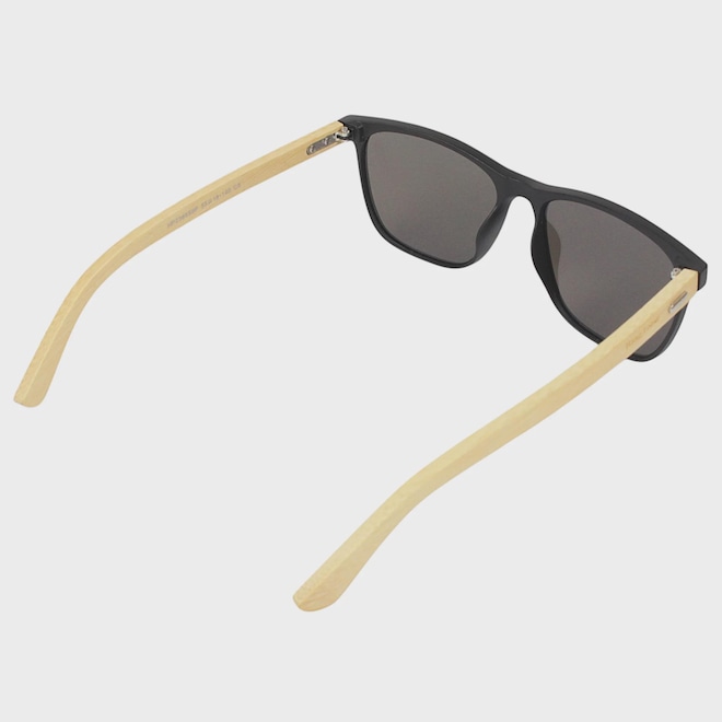 A armação tem a parte frontal produzida em acetato com as hastes em bambu.