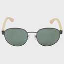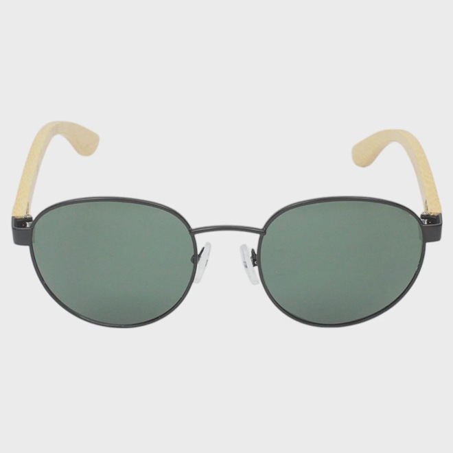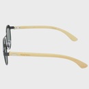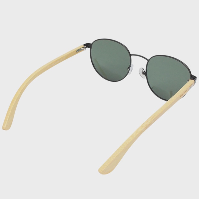 A armação tem a parte frontal produzida em metal com as hastes em bambu.