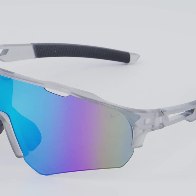 Contém: 1 óculos de sol e 1 estojo de tecido Composição lente: Policarbonato Comprimento da haste: 13 cm Peso aproximado: 30 g Largura frontal: 20 cm Indicado para: Corrida Cor da lente: Azul Gênero: Unissex Origem: Nacional Tamanho único