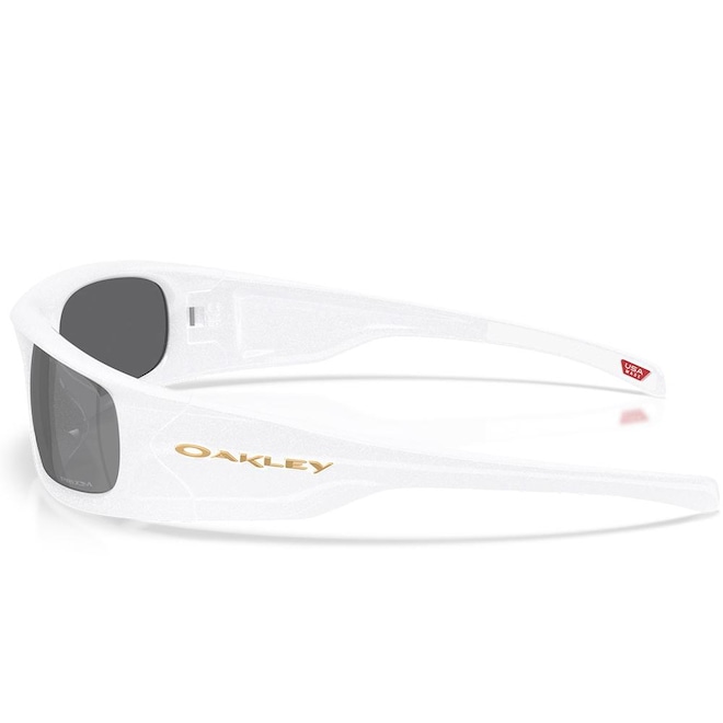 Armação de O-Matter: o material da armação termoplástica moldada por injeção da Oakley oferece maior resistência e flexibilidade em relação ao acetato tradicional e foi realizado para resistir a deslocamentos ou deformações ao longo do tempoDesign Envolvente: concebido para fornecer excelente cobertura, oferecendo proteção superior contra o sol