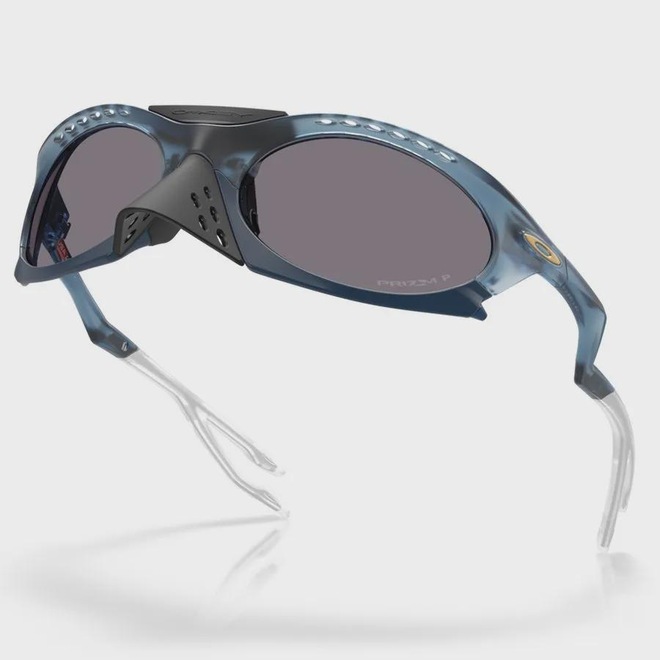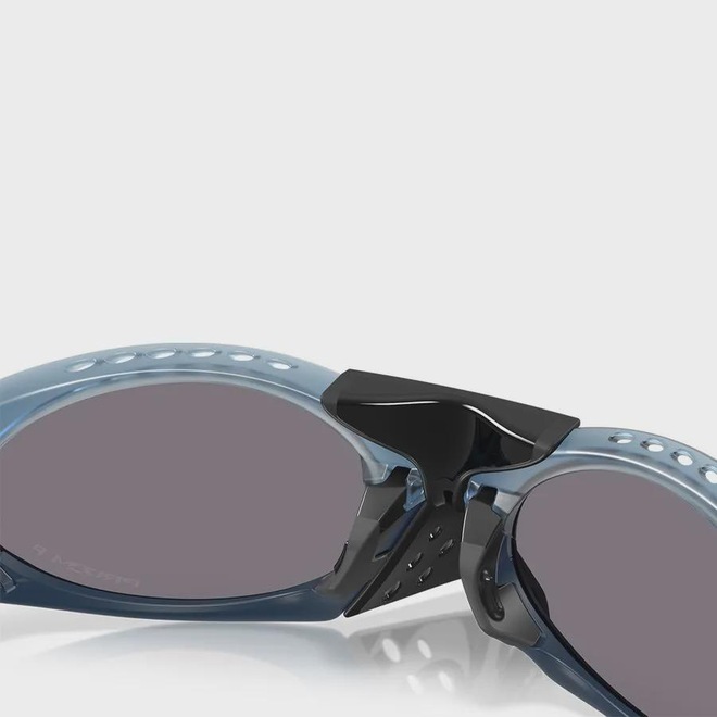 Inspirado pela observação das formas e criaturas encontradas na natureza, o Plantaris tem um design ousado com características funcionais e técnicas. O design de haste ajustável se divide em duas bases inspiradas em sapos, cobertas por pontas de silicone transparentes exibindo o núcleo de arame que remete a veias. Uma ponta cônica removível torna-o adaptável ao ambiente em que você estiver, enquanto a tecnologia Switchlock facilita a troca das lentes. As lentes Prizm Grey melhoram as cores, o contraste e os detalhes, otimizando a experiência de visão em condições de alta exposição à luz do sol. Ref.: OO9437-09