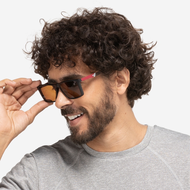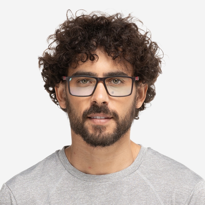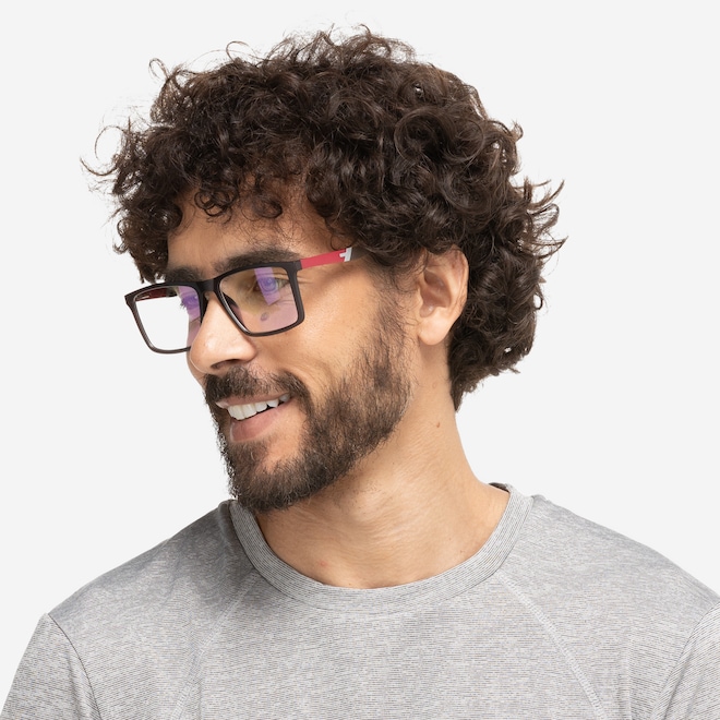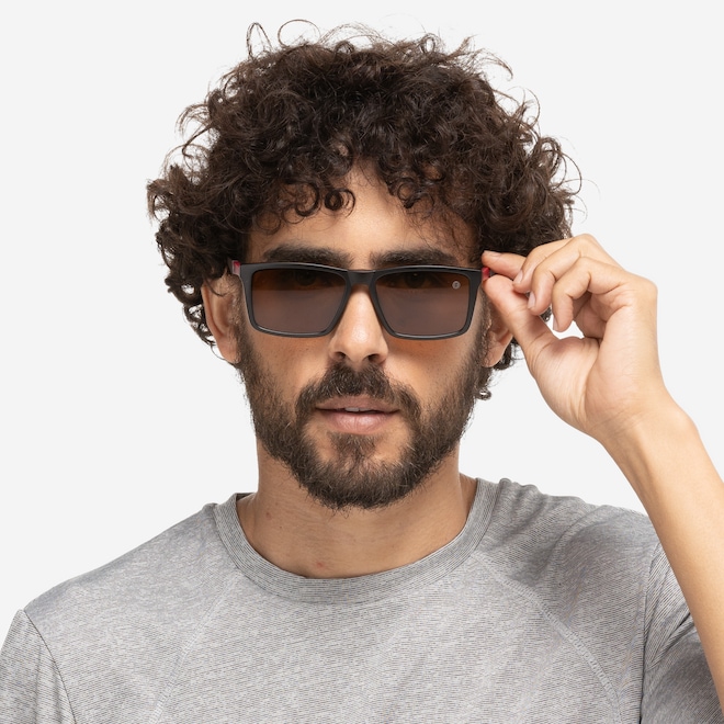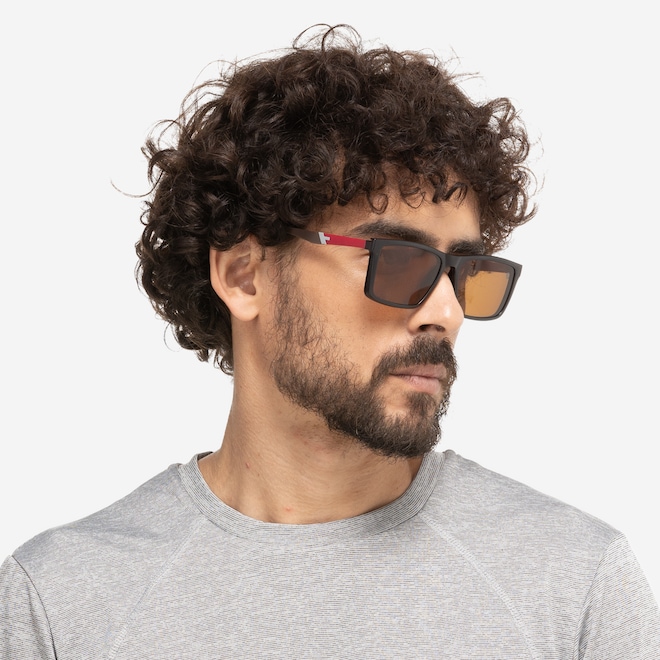 A armação conta com hastes emborrachadas, proporcionando ajuste seguro e confortável.