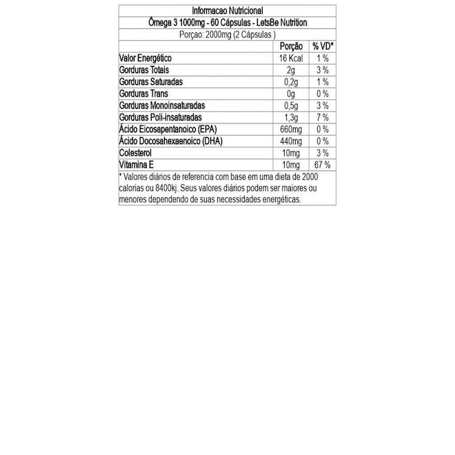 Ômega 3 1000mg - 60 Cápsulas - LetsBe Nutrition - Foto 1