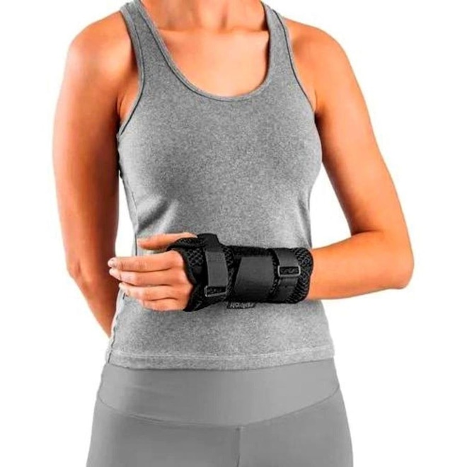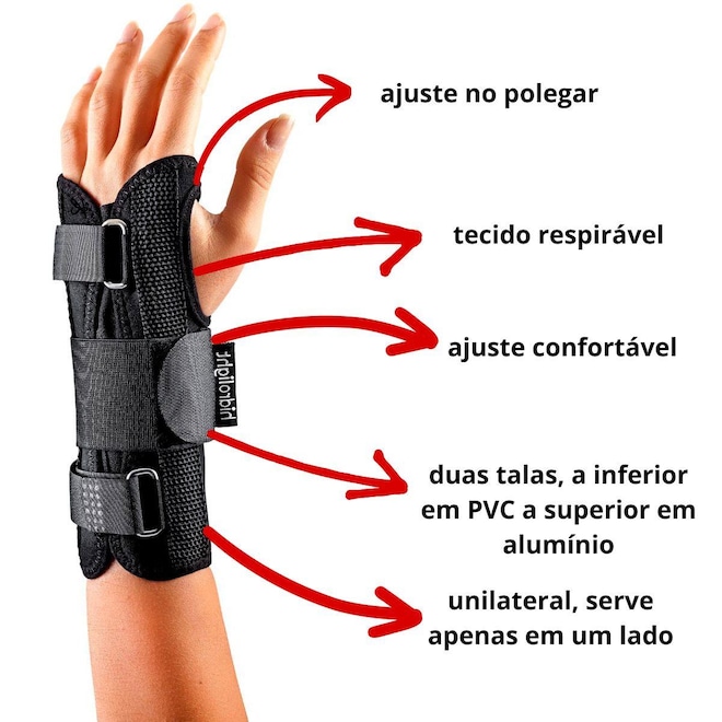 Contém uma tala em nylon na parte inferior da órtese, que vai do polegar ao antebraço para maior segurança ao usuário.