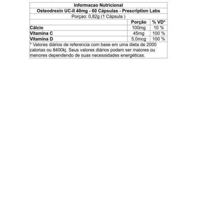 OSTEODREXIN UC-II ainda contém cálcio, vitamina C e D, nutrientes importantes para a saúde dos ossos.
