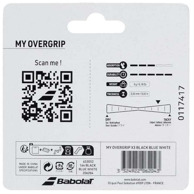 Descrição do Overgrip Babolat My Grip X3 Azul Branco e Preto