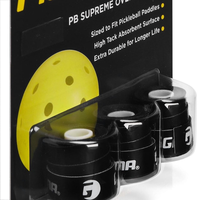 - Detalhamento: Superfície macia, grip na cor preta e pacote com 3 unidades. Ideal para todas as raquetes de pickleball de 31 polegadas;