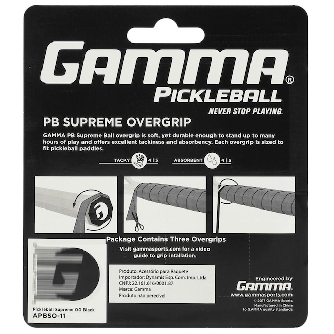 Descrição do Overgrip Gamma Pickleball Supreme com 03 Unidades Preto