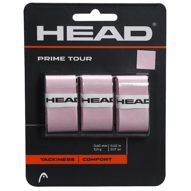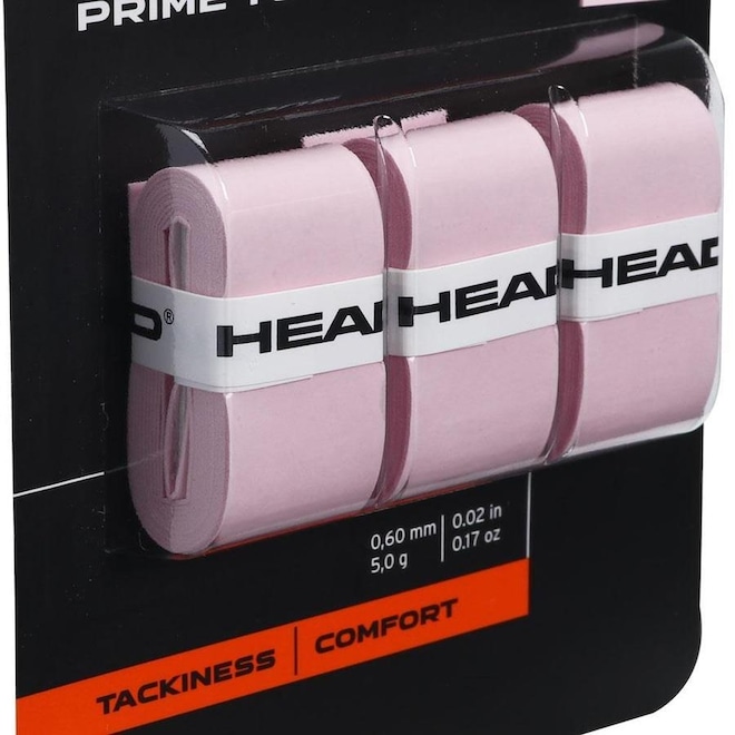 Conheça as Características do Overgrip Head Prime Tour Rosa - Perfil: Tennis - Material: PU - Detalhamento: Embalagem com três unidades, proporciona uma sensação seca, conforto e uma aderência segura - Medidas: 0,60mm de espessura - Garantia do fabricante: Contra defeito de fabricação - Origem: Importado.