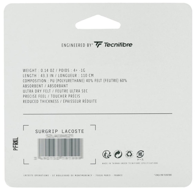 Descrição do Overgrip Lacoste Surgrip Com 03 Unidades Branco