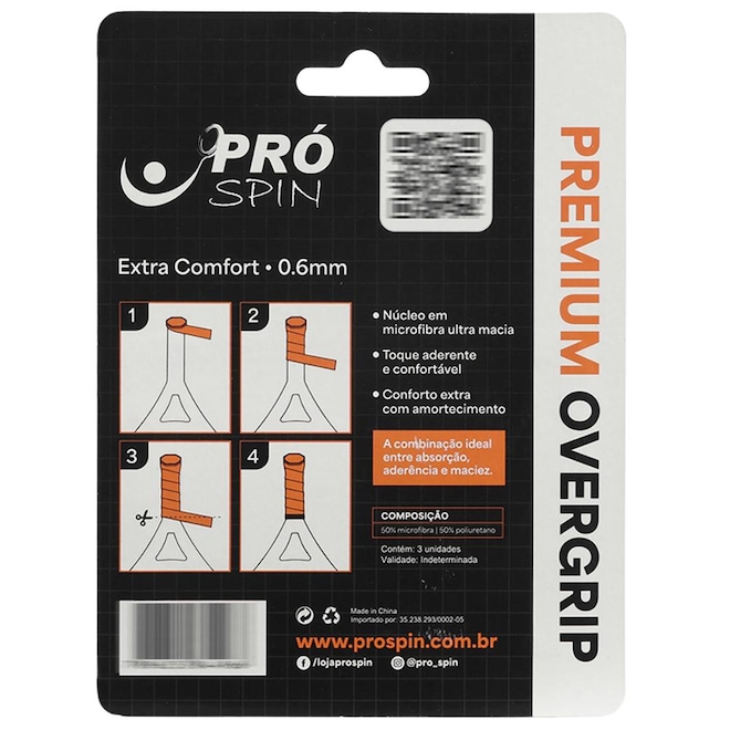 Descrição do Overgrip Pró Spin Extra Comfort Com 03 Unidades