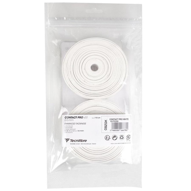 Descrição do Overgrip TecniFibre Pro Contact Branco com 30 Unidades - 0.6mm Surgiu na França em 1979, a TecniFibre desenvolve produtos esportivos como acessórios para Tênis, Squash e Padel comercializando seus produtos em vários países ao redor do mundo.ref: M0JY6S