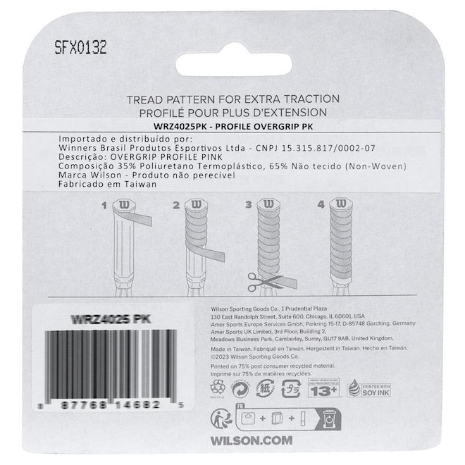 A Wilson é uma empresa líder na produção e desenvolvimento de produtos esportivos como acessórios para tênis, golfe, futebol americano, basquete, baseball, vôlei de praia, entre outros esportes, comercializando seus produtos em mais de 120 países ao redor do mundo. Sempre inovadora, seus produtos trazem o que há de melhor em tecnologia, um exemplo disso é o Overgrip Wilson Profile com 03 Unidades '', desenvolvido para os tenistas que buscam maior conforto na pegada. Tudo para a sua máxima performance.