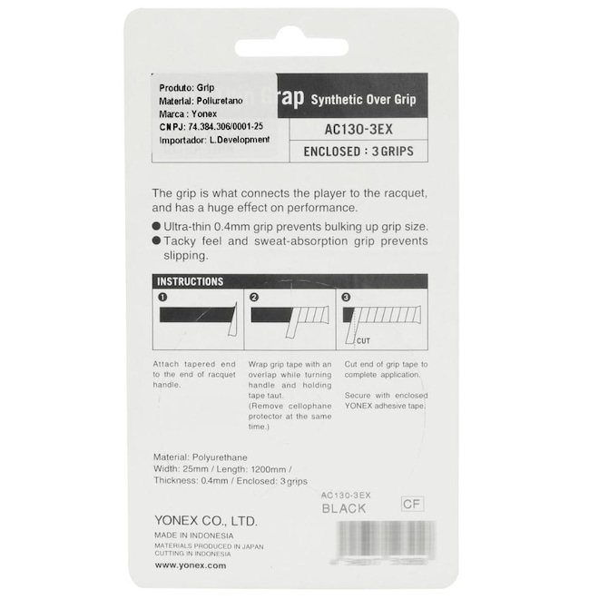 Conheça as características do Overgrip Yonex Ultra Thin Grap 0.4mm com 3 Unidades Preto