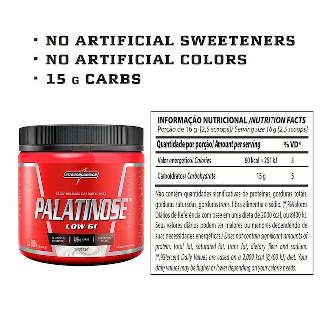 Palatinose integralmédica não possui corantes nem adoçantes artificiais e é facilmente solúvel em água, tornando seu consumo prático e adaptável a sua rotina de treinos