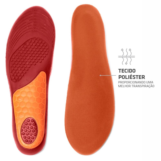 O modelo da palmilha de gel foi pensada para uma melhor comodidade, por isso traz a opção de recorte no tamanho desejado. Com linhas tracejadas na parte dos dedos, pode ser ajustada conforme a preferência de tamanho. Para isso, basta apenas recortar nas marcações, que variam do tamanho 36 ao 43, e usá-la como palmilha para tênis, mas também de botas e até mesmo de sapatos sociais.