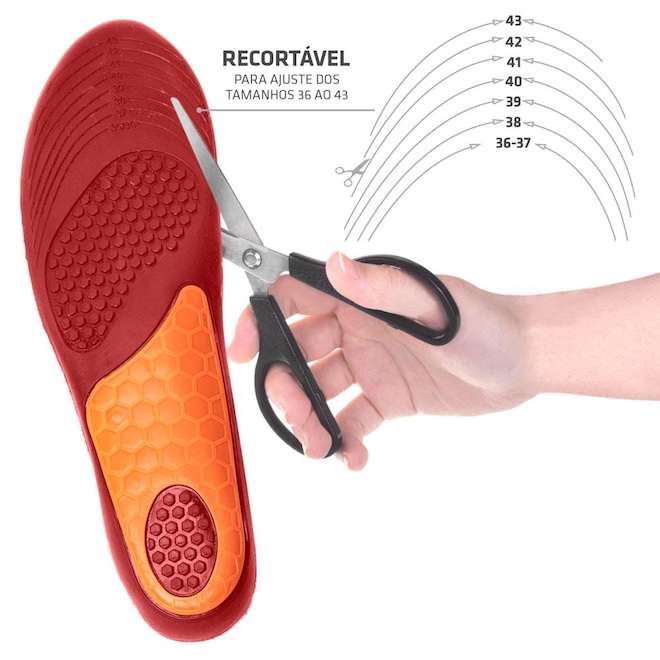 - Recortável para ajuste dos tamanhos 36 ao 43