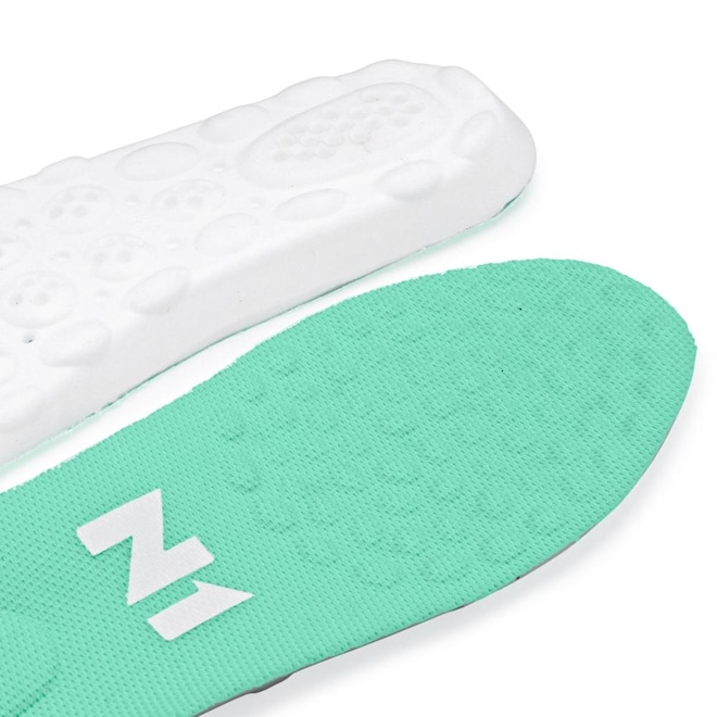 - Detalhamento: Com design anatômico que reduz a pressão em áreas sensíveis, a palmilha possui duas camadas: a primeira é feita de tecido 100% algodão, com textura antiderrapante, transpirável, antibacteriana e antialérgica, enquanto a segunda camada possui 5 mm de espessura e conta com a tecnologia Ultra Soft. Além disso, relevos massageadores estimulam a circulação sanguínea dos pés, e pontos de ventilação ajudam a evitar a proliferação de bactérias e o surgimento de odores;