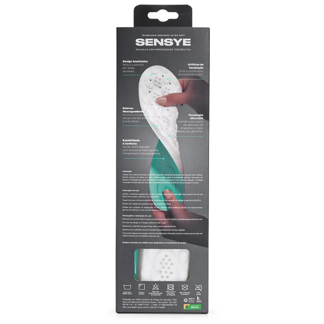 - Indicação: Auxilia nos casos de artrite, tendinites, esporão calcâneo, absorção de impactos para atletas, fascite plantar, pé plano ou cavo, metatarsalgia, calos e calosidade plantar, e Neuroma de Morton. Proporciona proteção para pés diabéticos e sensíveis, suporte no arco plantar, redução da fadiga muscular na base plantar dos pés, auxílio em casos de neuropatia periférica e melhora a circulação dos pés;