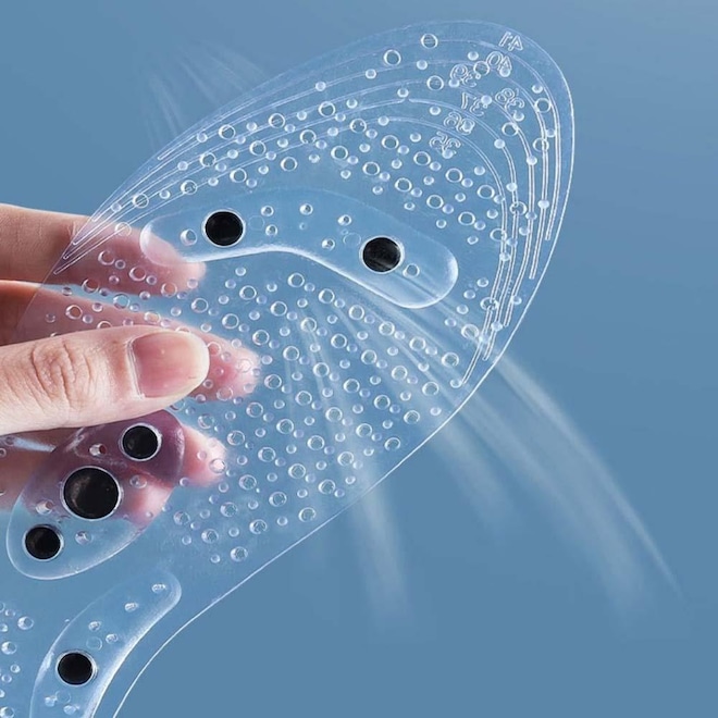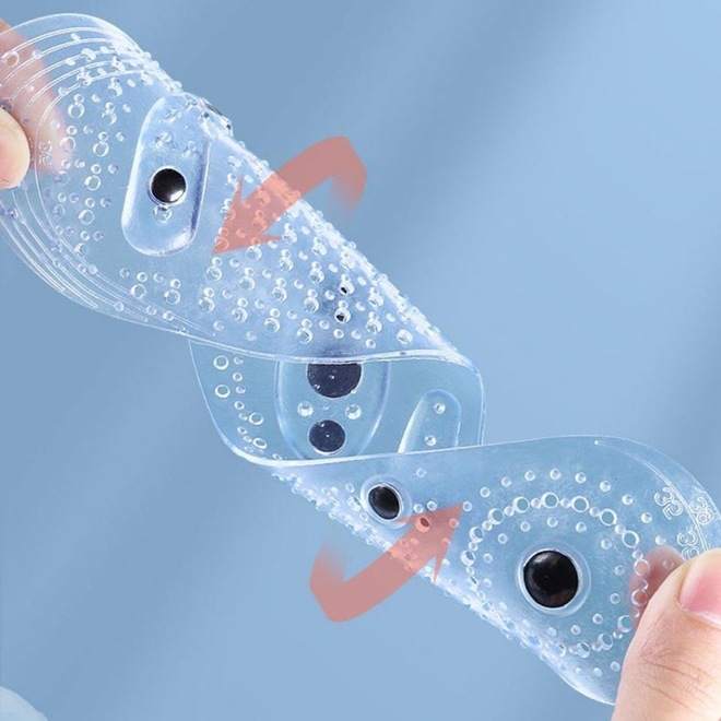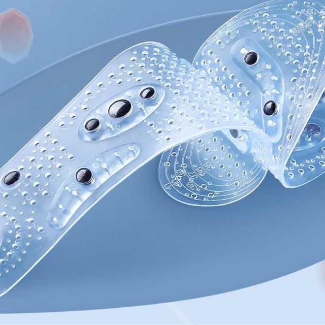 Seus pés merecem o melhor cuidado e conforto. Apresentamos as palmilhas de silicone com pontos magnéticos, que são a solução perfeita para seus pés cansados. Essas palmilhas são feitas de silicone de alta qualidade e tem linhas de corte, o que significa que elas se encaixam perfeitamente em qualquer tipo de sapato. As palmilhas são projetadas com pontos magnéticos que ajudam a estimular os pontos reflexos do organismo, proporcionando um estímulo saudável para o corpo. Além disso, as palmilhas são respiráveis e ajudam a manter seus pés secos e confortáveis durante todo o dia.