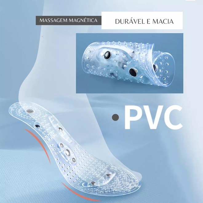 - A palmilha é bem fina e leve, não dispensa o uso da palmilha original do tênis. Seu objetivo é estimular os pontos de acupressão emitindo ondas magnéticas para tratamento de patologias.