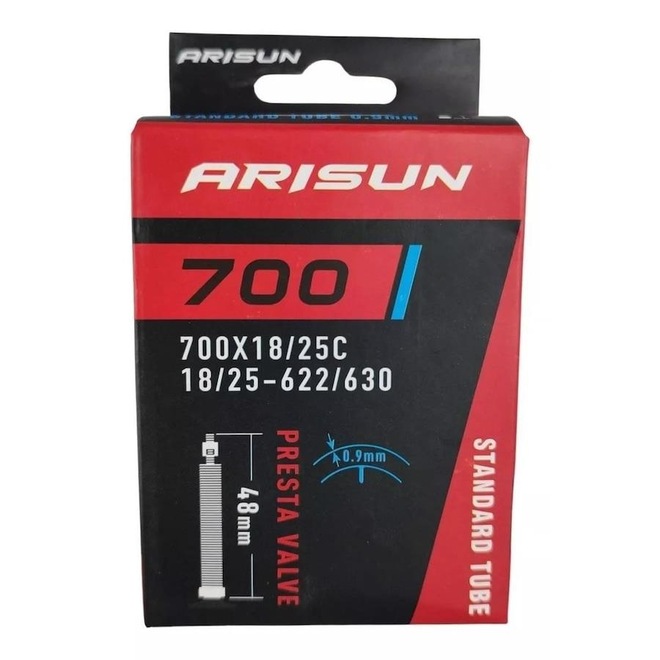 A câmara de ar Arisun 700 x 18/25 é produzida sob os mais rigorosos padrões de qualidade, de acordo com as normas ABNT/INMETRO.