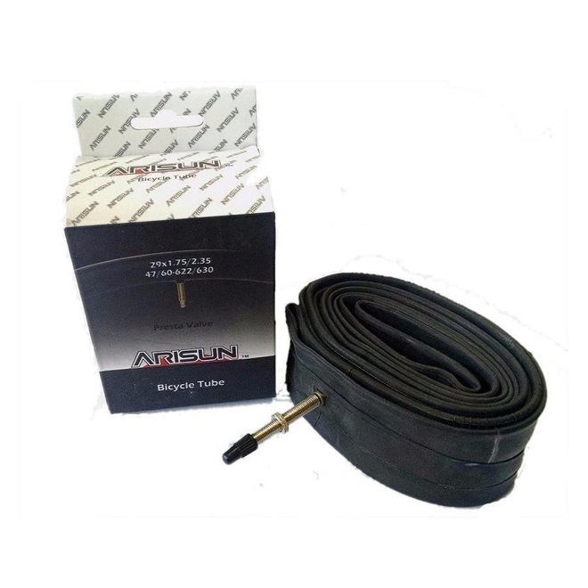 A câmara de ar aro 29 Arisun 29 x 1.75/2.35 válvula presta 48 mm possui selo de segurança no INMETRO, possui válvula presta (bico fino) 48 mm e compatibilidade para aro 29 e largura de pneu entre 1.75/2.35.