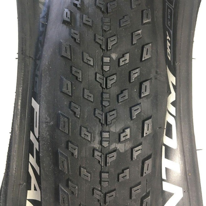 No centro do pneu possui cravos apertados para minimizar a resistência ao rolamento e nas laterais, cravos com mais espaços para maior estabilidade e segurança.